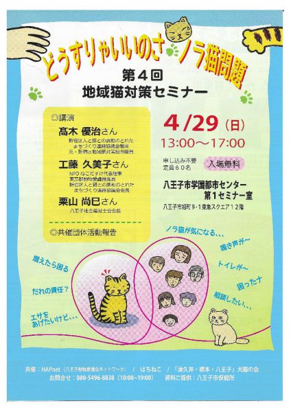 猫をめぐる問題を市民目線で考えるセミナーです。