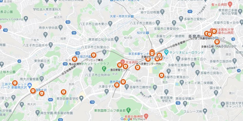 多摩ニュータウン近辺で電話・オンライン診療を実施している医療機関をマップの形式でまとめました。
