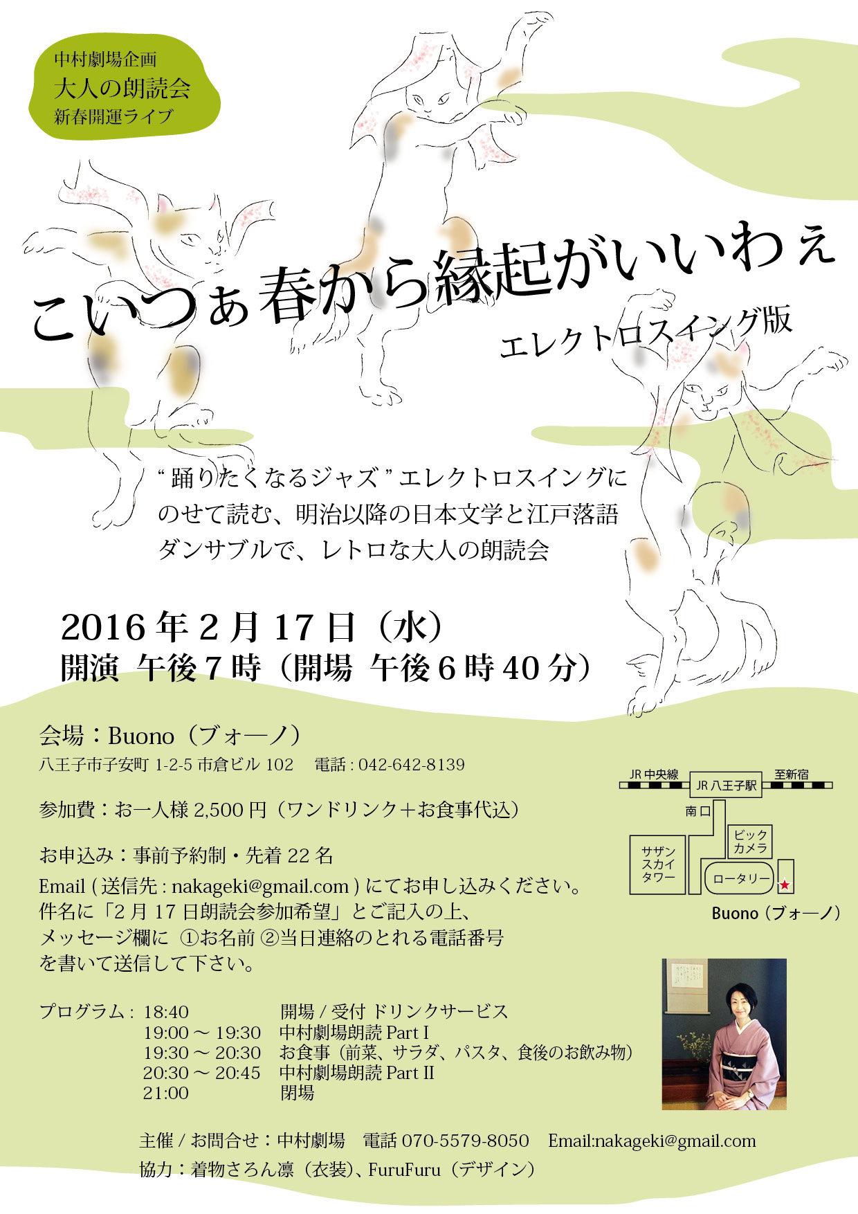 題名: 中村劇場大人の朗読会「こいつぁ春から縁起がいいわぇーエレクトロスイング版」 2月公演…