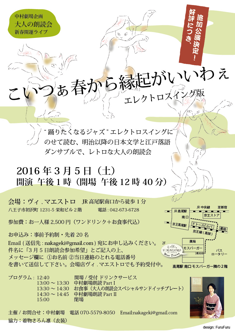 中村劇場大人の朗読会「こいつぁ春から縁起がいいわぇーエレクトロスイング版」追加公演