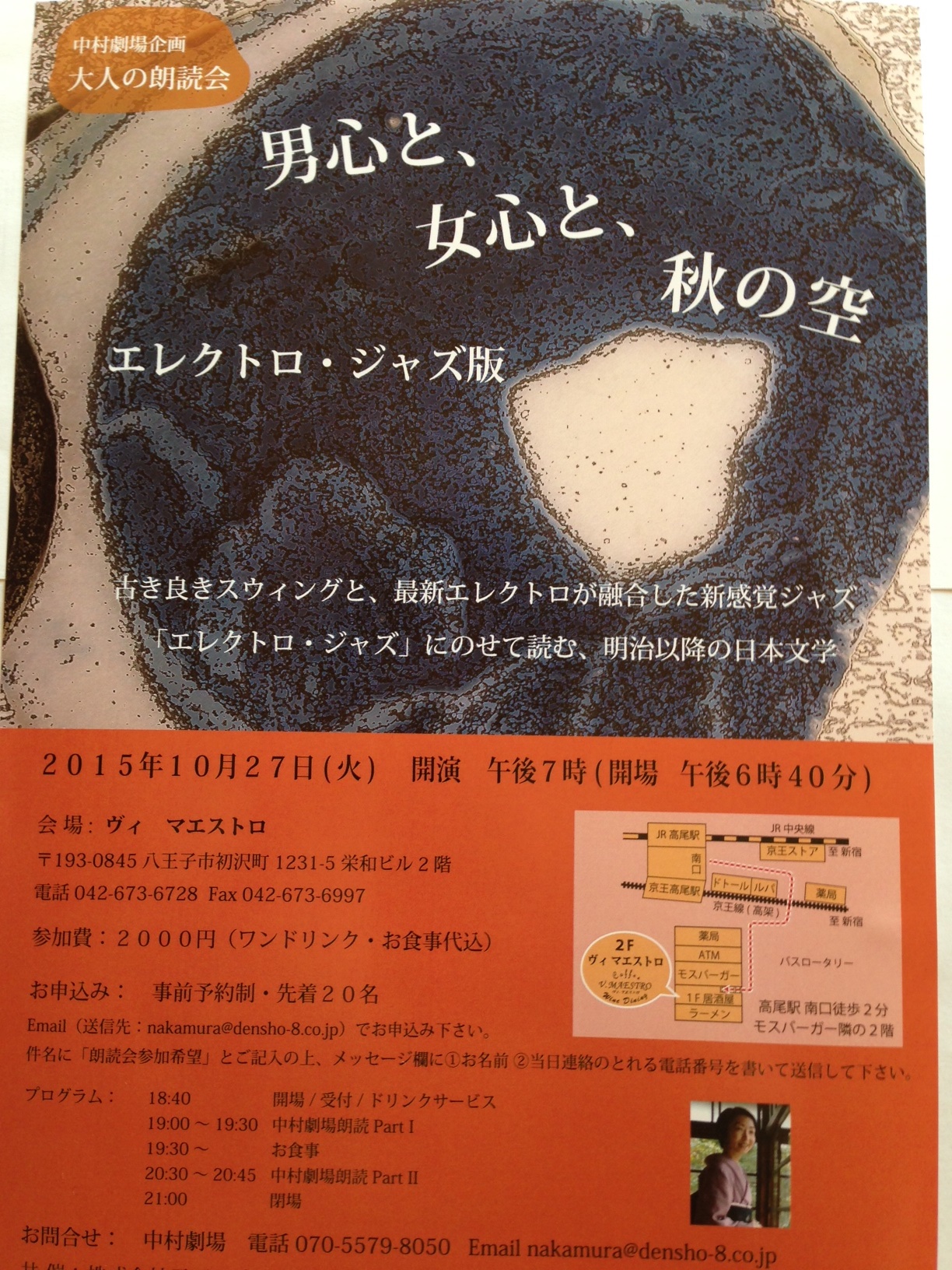 中村劇場企画・大人の朗読会 『男心と、女心と、秋の空』 懐かしのスウィングと最新エレクトロ融…