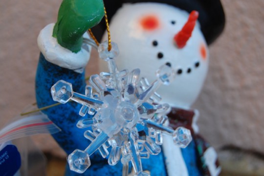 雪だるまの手には雪の結晶。南大沢で今年も雪を見ることは出来るでしょうか。